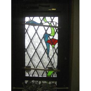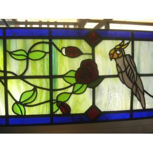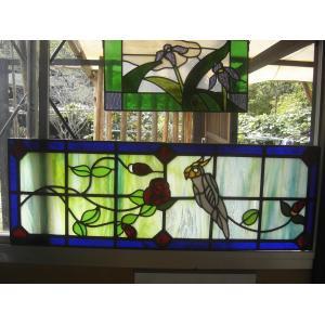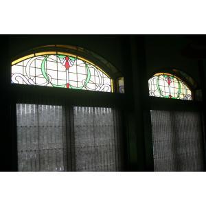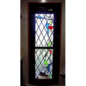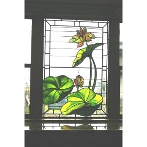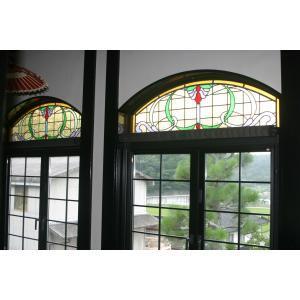 パネルやランプはもちろん、アクセサリーからオブジェに至るまですべて手づくりです。骨董が大好きで、古伊万里の器や古布、アンティークのベースや鉄などとコラボした作品や、古い水屋や書棚をガラスを用いてレトロな雰囲気にリメイクした作品も制作しています。