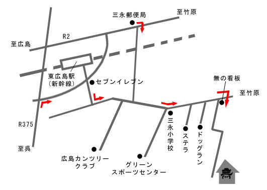 *東広島駅から 約2km  *三永小学校から 約1km  *看板より山道へ入る 約500m